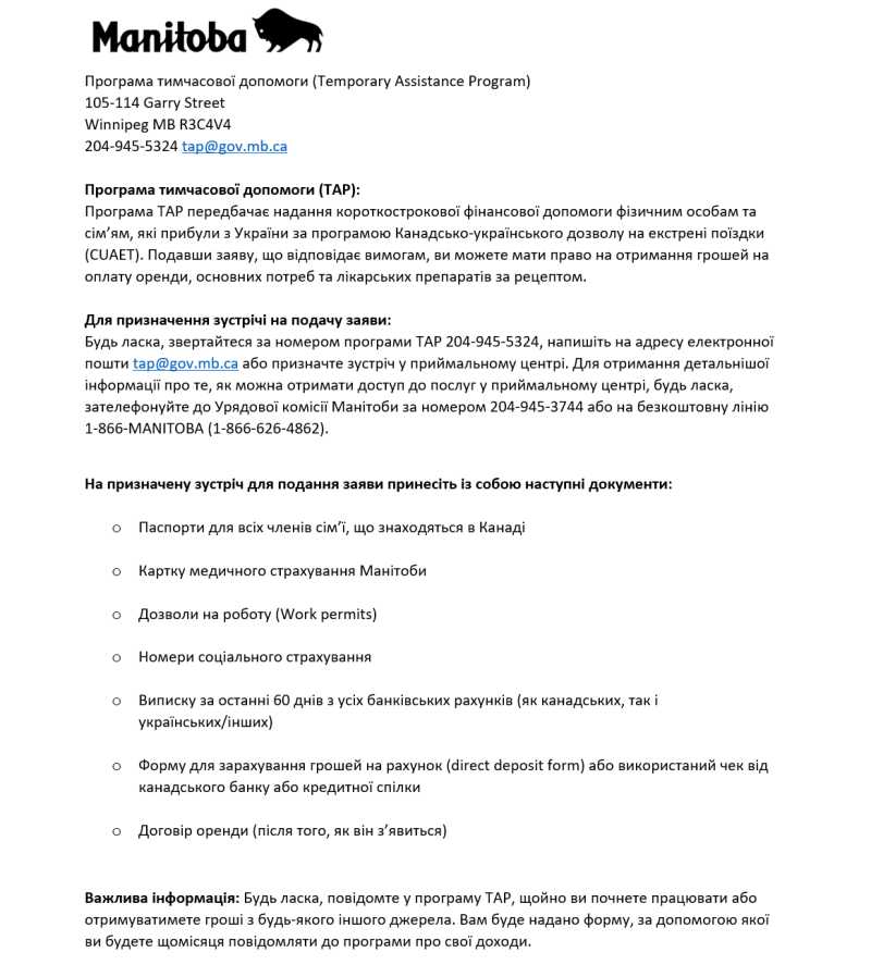 Всю інформацію про підтримку Манітоби для українців можна дізнатись на офіційному сайті https://manitoba4ukraine.ca/uk/